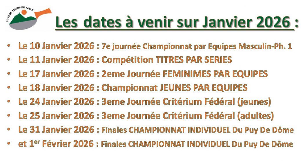 - 31 janvier-01 février : Finales Individuelles CD63 TT