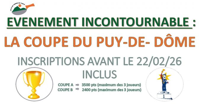 ATTENTION ! En raison de nombreuses inscriptions de dernière minute sans que le CD63TT ne soit prévenu, il est désormais impératif de vous inscrire auprès de votre club avant le 07/02/2026 dernier délai en utilisant la fiche d’inscription ci-dessous