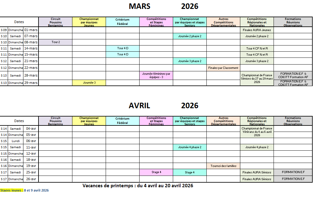 ♦ 29/09/2025 : modifications dates de stage jeunes pour février 26