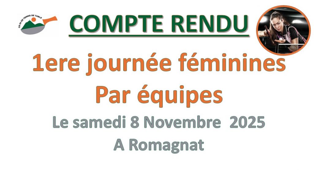 La 1ère journée féminine par équipes a eu lieu le 08 novembre 2025 à Romagnat. Merci au club du TT Romagnat d’avoir mis à disposition ses installations sportives.