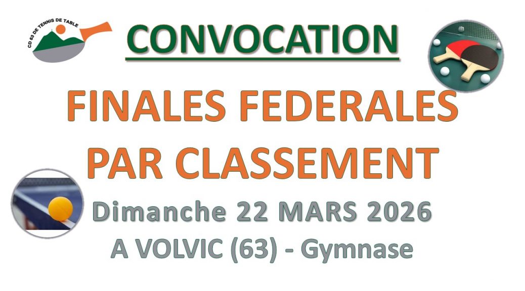 Les finales fédérales par classement se dérouleront :