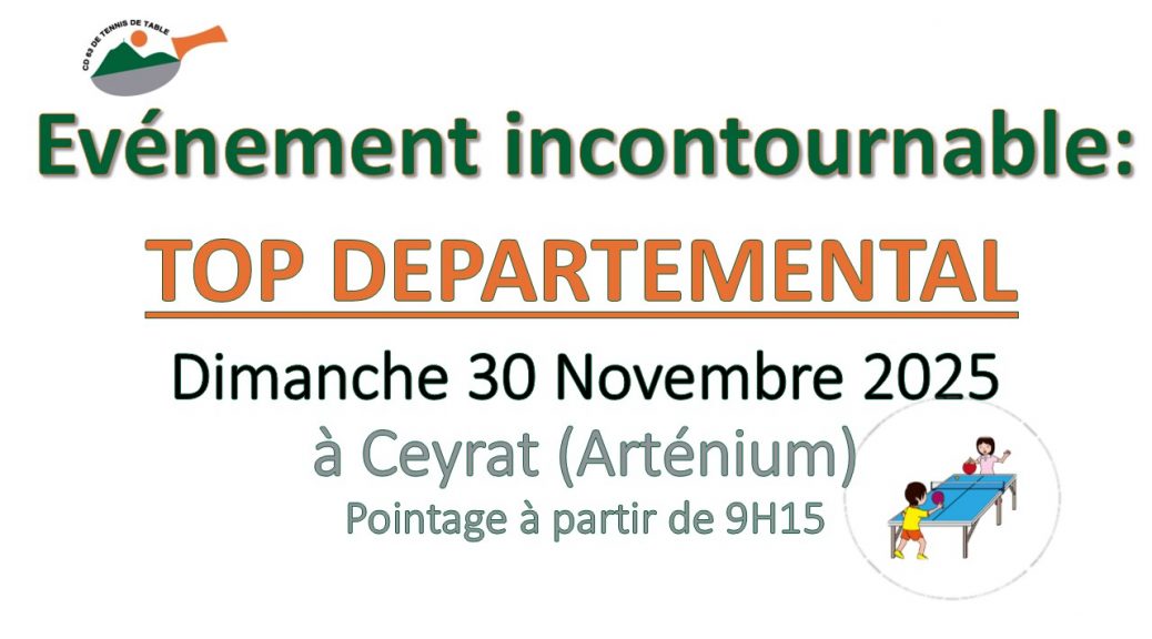 Veuillez trouver ci-joint, le dossier d’inscription au TOP Départemental qui aura lieu le dimanche 30 Novembre 2025 à l’ARTENIUM.(CEYRAT).
